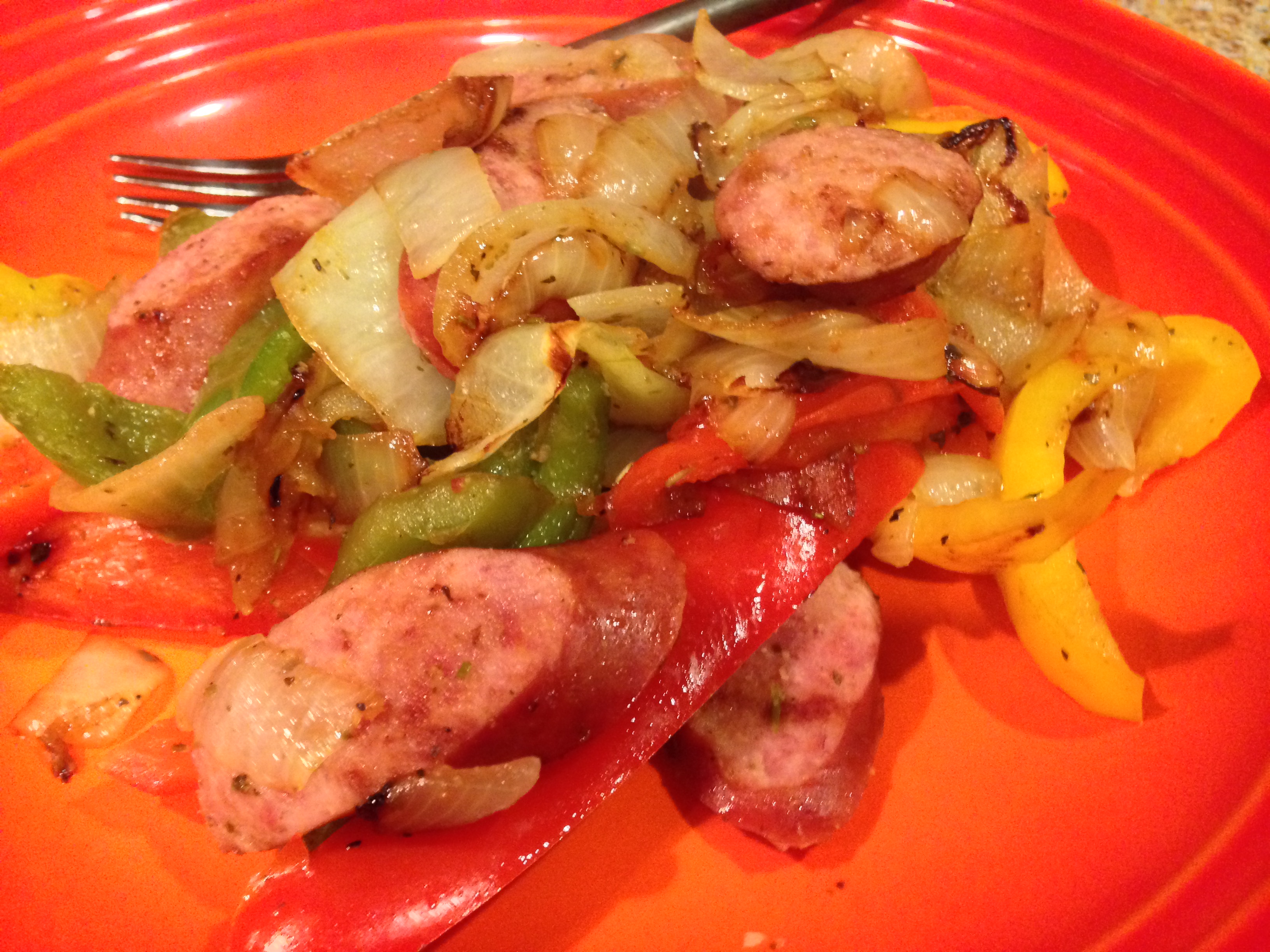 Next, slice the Turkey Kielbasa at an angle. See below for all of the yumminess together.