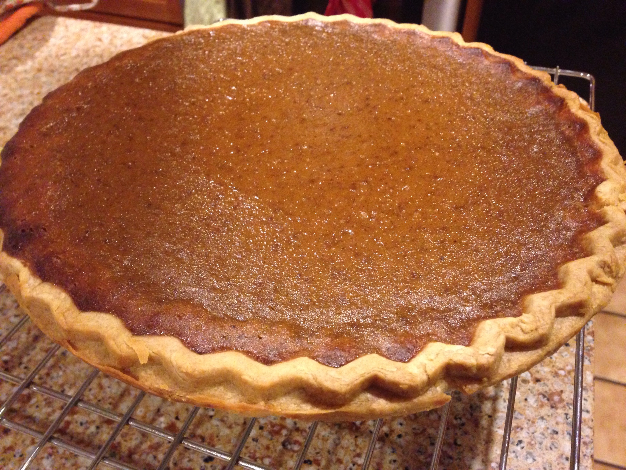 The pumpkin pie intrigued me because it had ginger in it. I love ginger. If ginger is involved, I am typically interested. Of course, it had many of the normal spices – nutmeg, cinnamon and clove. The recipe came from King Arthur Flour. It had delicate and smooth pumpkin flavor with added spice. One of the best we have had in our family. Yum!