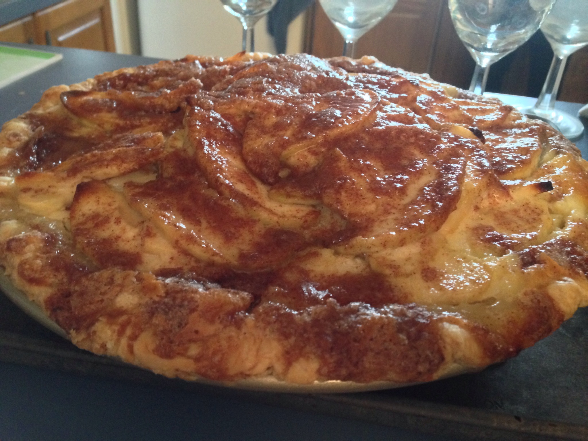 The apple pie is unusual – it has a custard-like center. It’s important when following the recipe to measure properly and cut the apples thin. The Granny Smith apples worked great. The recipe is for Sour Cream Apple Pie. The topping has the flavors similar to a traditional apple pie. Because of this topping, I recommend putting the pie on a pan as the sugar and butter may end up in your oven. Another idea is to put a pan with sides under the pie while its cooking. I brought this pie to Thanksgiving #1 and #2 (we do two houses every holiday – make sure to see both mine and my husband’s family). This pie was a hit! Deliciously unique 🙂