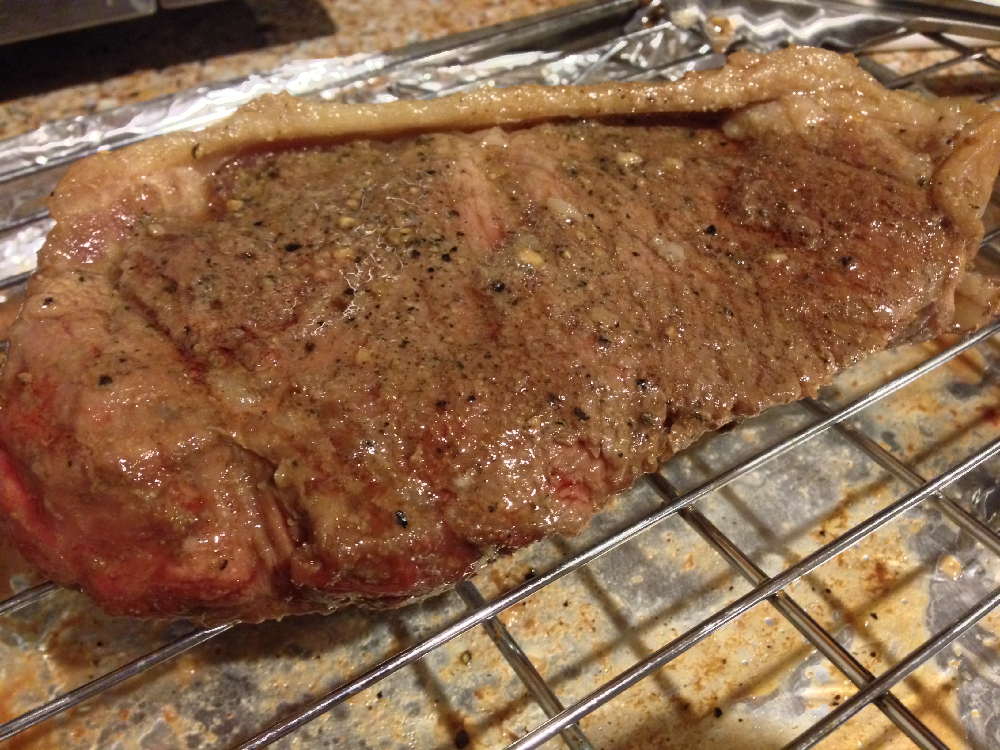 The steak was really good but it was cooked more than medium rare. I’d say the steak was at medium to medium-well. It was a faint pink the center. I’m wondering if the the size of the steak may matter with this technique. Overall though, I really liked the crust and the steak was really juicy. It tasted great. Just wish I could have gotten the temperature closer to medium rare. This was fun to test 🙂 Let me know if you give this technique a try!