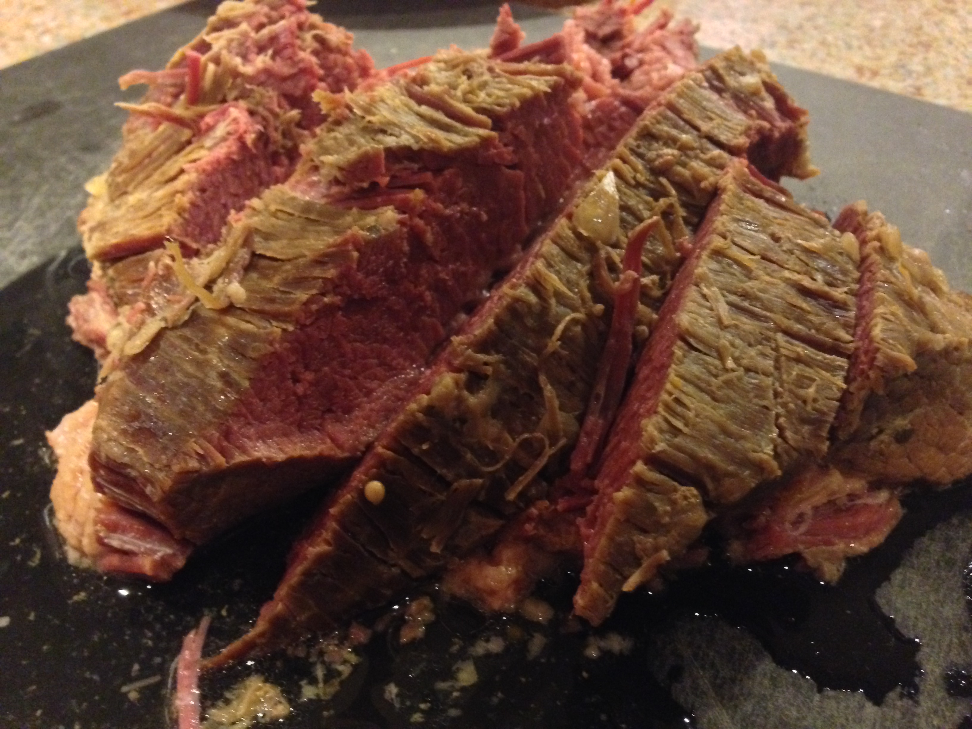 Now, it’s ready to serve! You can slice the corned beef… it should be very tender. I recommend purchasing some vinegar for the cabbage (makes it taste sooo good).