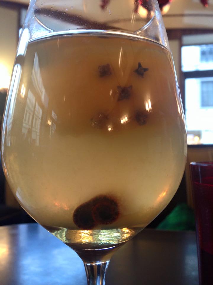 10891790_10100854927834635_1578963833026935869_n 10891593_10100854928039225_7127860693456699102_nApparently, the chicken sandwich bread was out and one of their deep fryer had broken!  I do have to say – they recovered well.  The sandwich was still crisp and juicy.  The Winterhawk was also delicious… cloves were embedded within the orange peel.  And of course, the drink comes with whiskey; so obviously, I was on board.