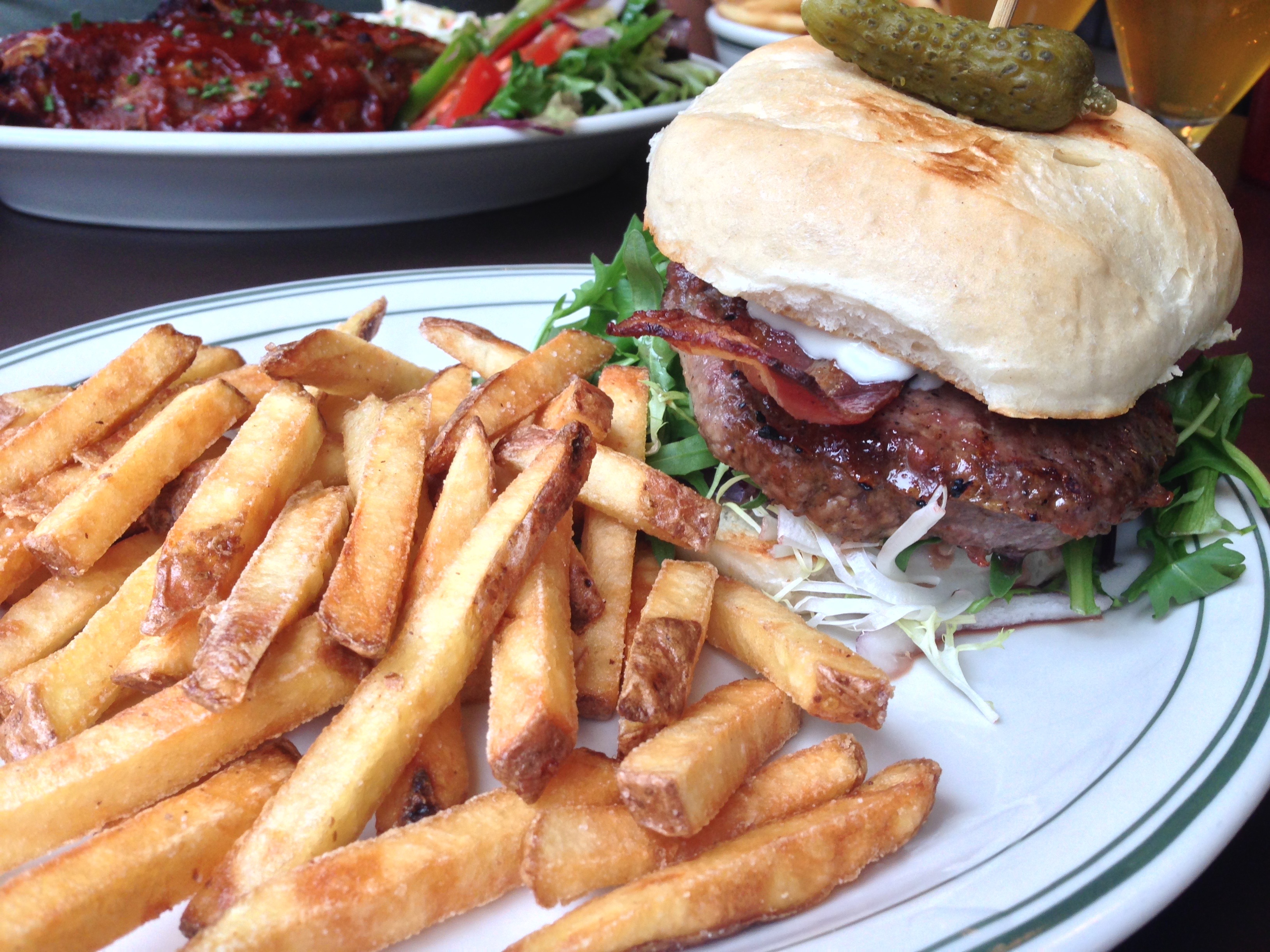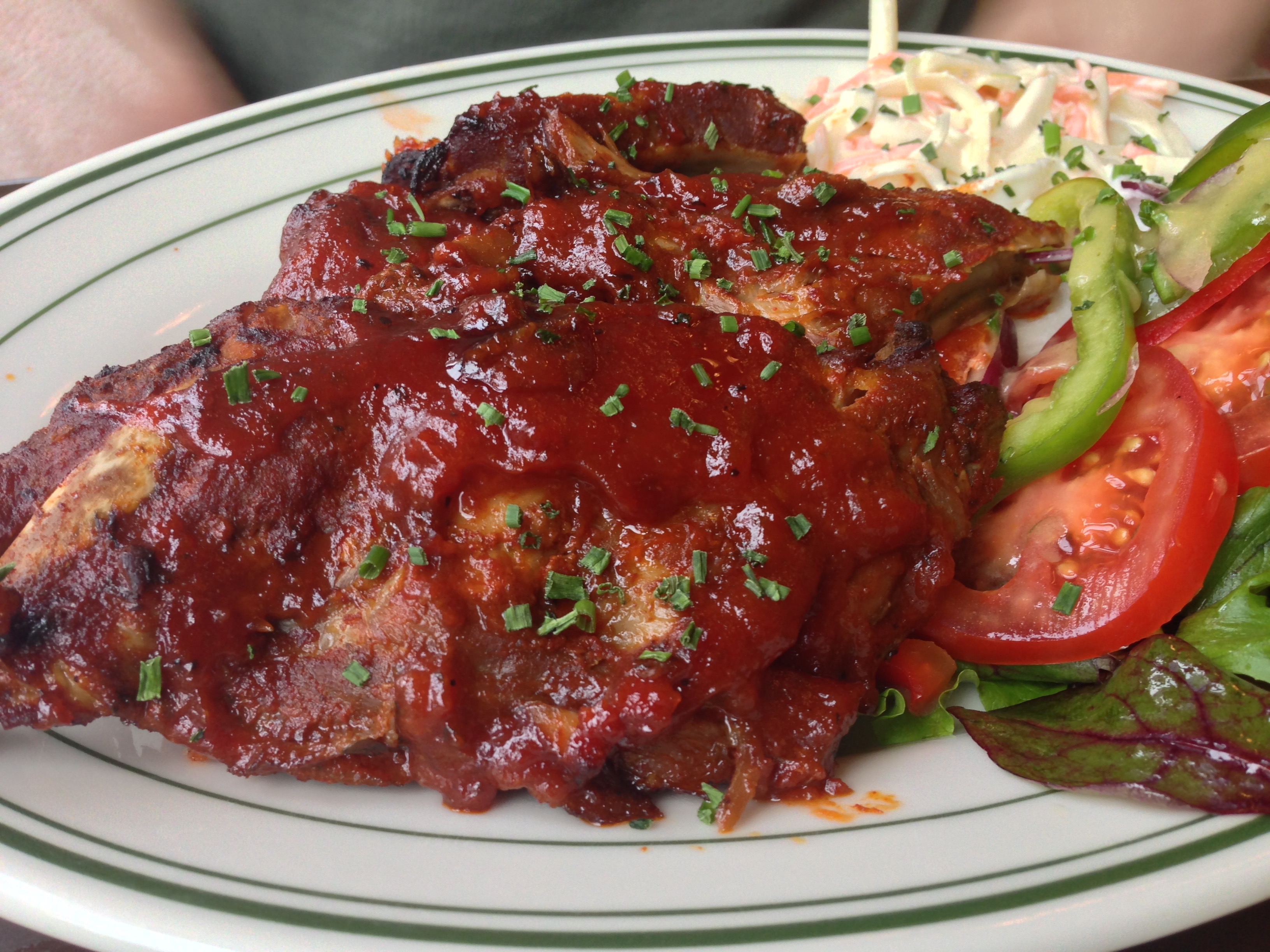 For dinner, Greg ordered the Nighthawk ribs and I ordered the Blind Cow burger with bacon.  The burger was good – lots of pepper on the burger with a blue cheese sauce.  I requested the addition of bacon for the burger.  Something about blue cheese and bacon – it’s an amazing combo.  The ribs were also very good.  Definitely cumin in the barbecue sauce which was both spicy and smokey.  And, when they say fall off the bone, they are not kidding.  You need a fork and knife!